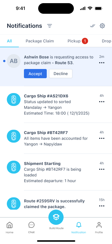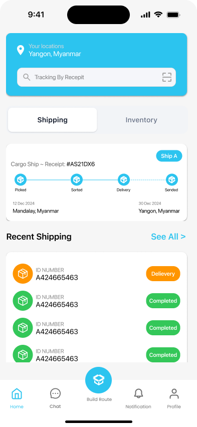 I designed a comprehensive inventory management system that empowers businesses to track stock levels, manage shipments, communicate with team members, and receive real-time notifications—all in one intuitive mobile application.
